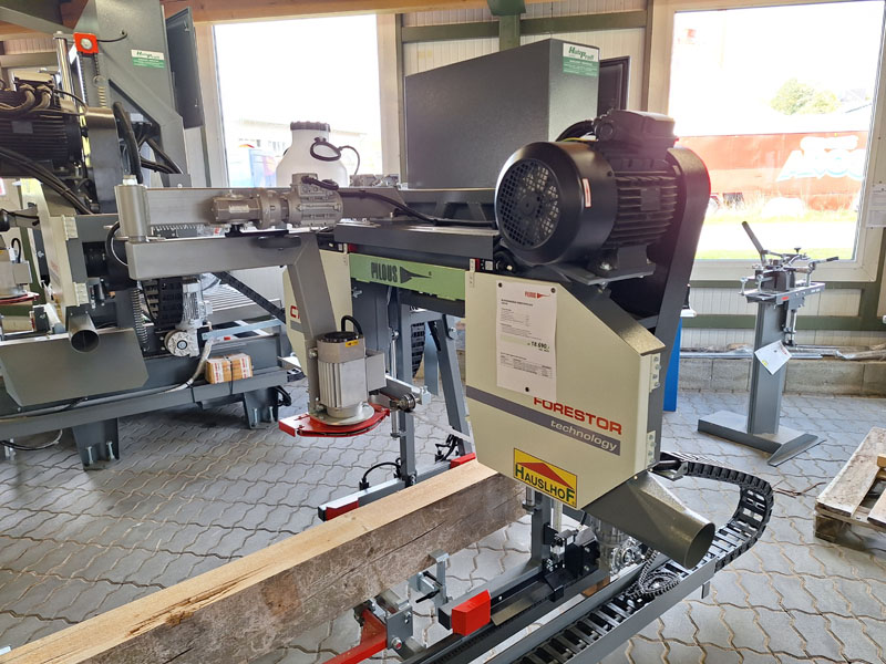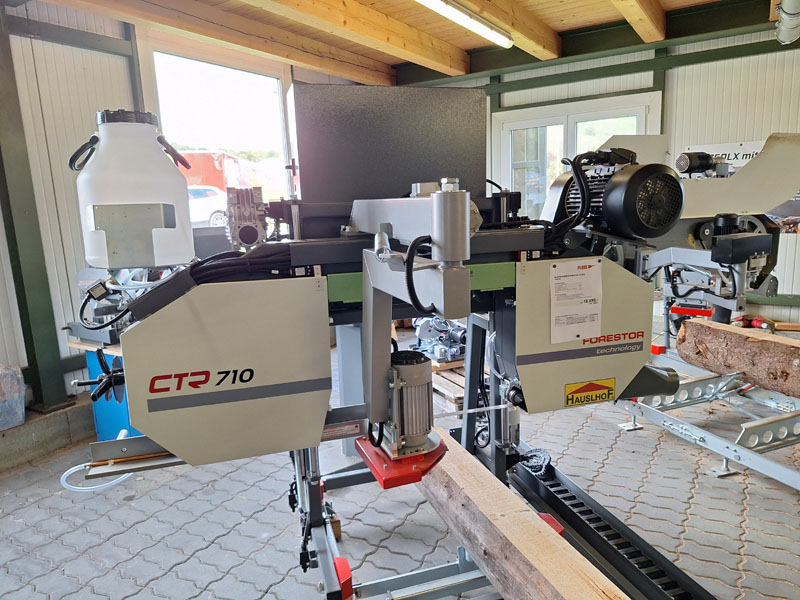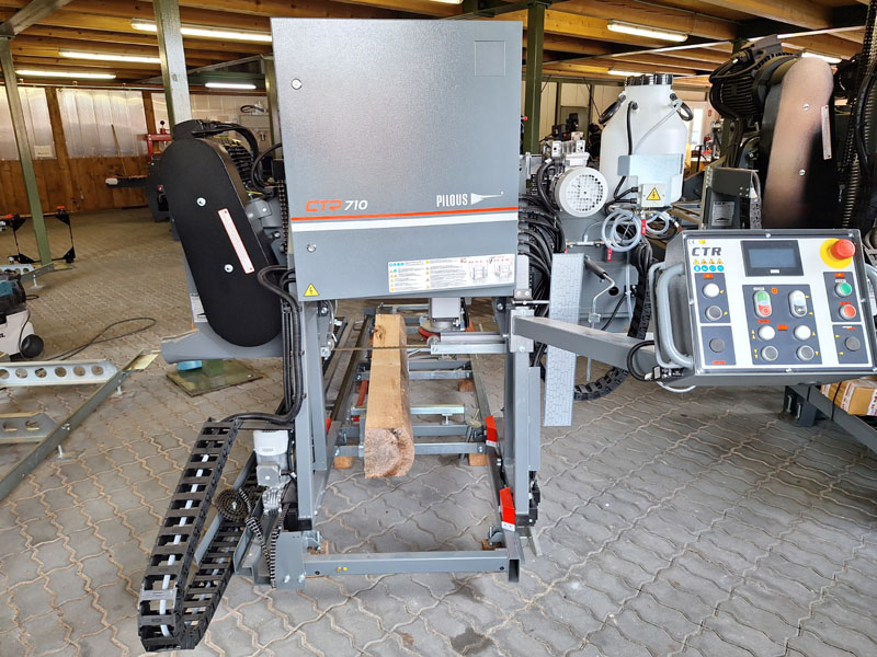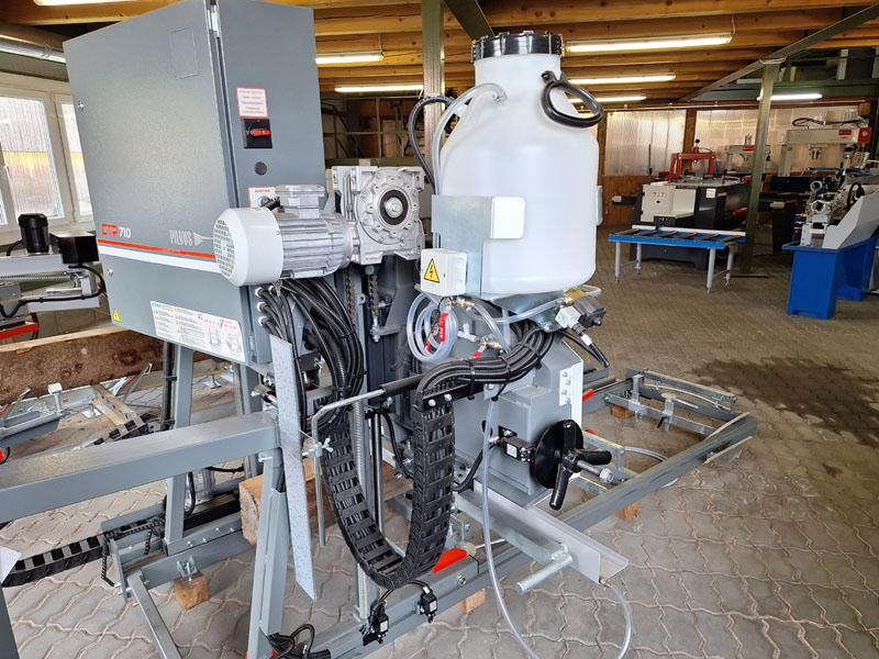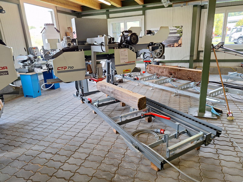 Solide Blockbandsäge für einen Stammdurchmesser bis 71 cm mit Verlängerungssektionen unbegrenzt erweiterbar. Automatischer Vorschub mit stufenloser Geschwindigkeit. Elektrische Höhenverstellung vom Bedienerpult aus zu regeln. 3,8-Zoll-Touch-LCD-Display für die Höhenverstellung. Beidseitig aufgehängtes Sägeaggregat für mehr Stabilität und bessere Präzision. CE geprüft.